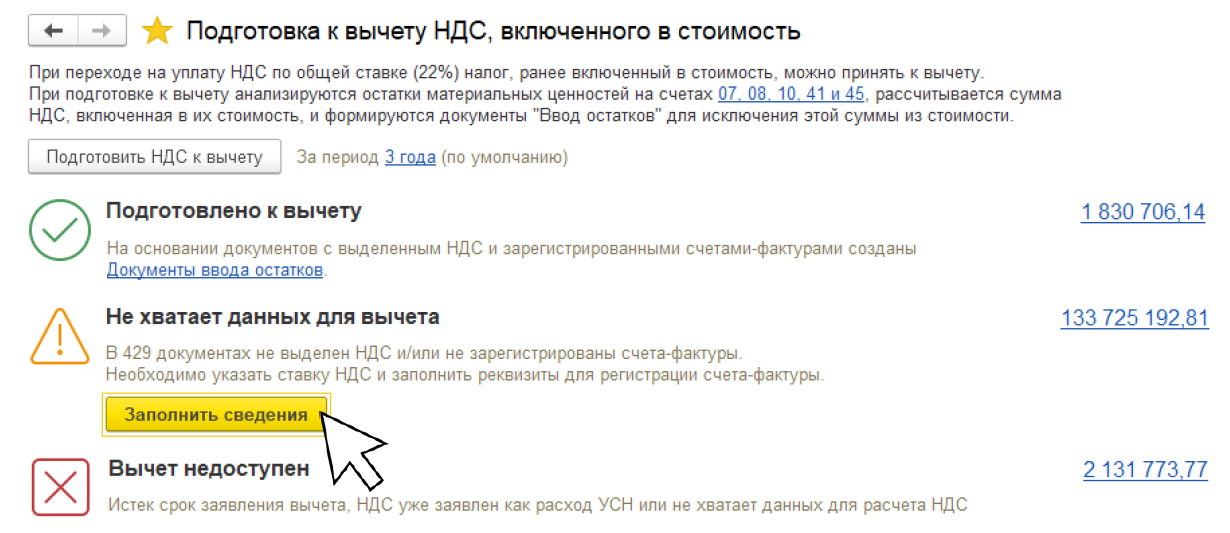 Так выглядит помощник подготовки к вычету НДС