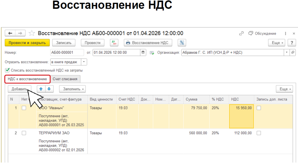 •Восстановление сумм НДС производится: