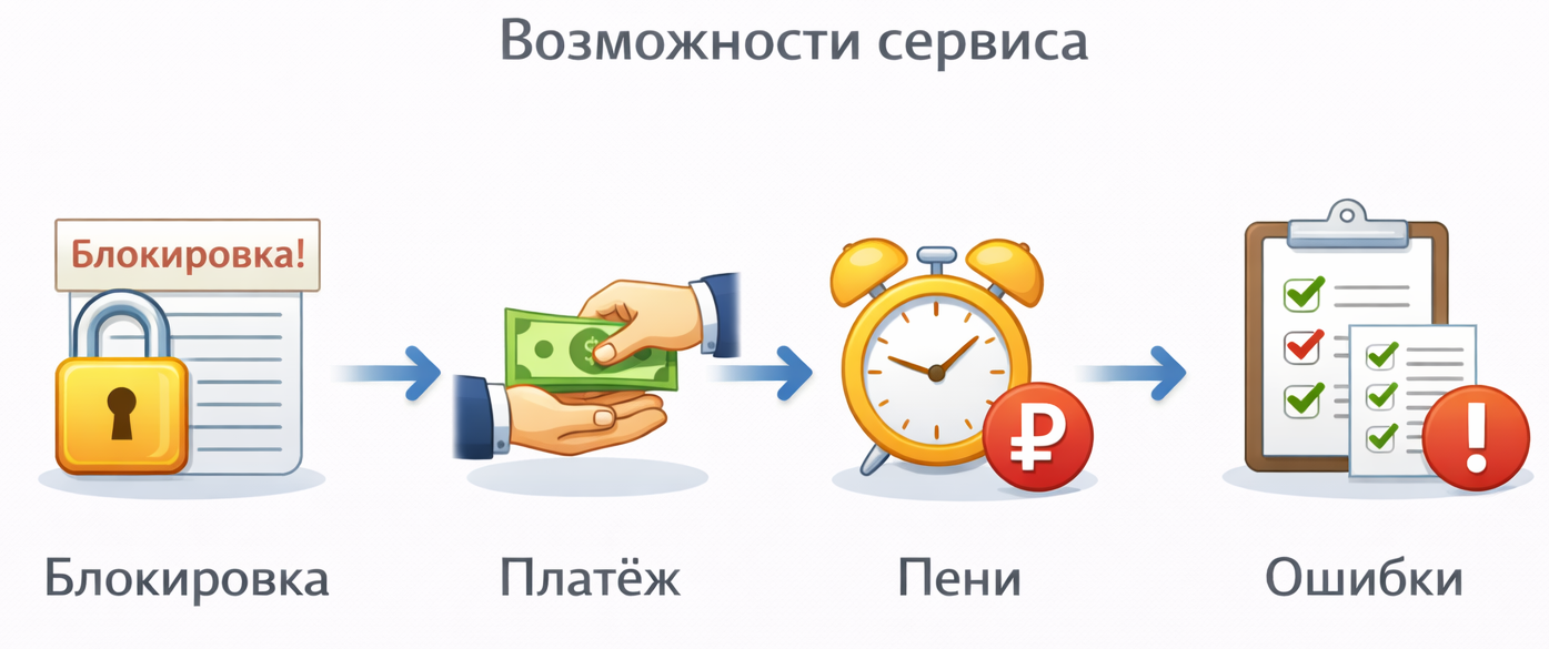 Во-вторых, система автоматически начисляет пени даже при минимальных отклонениях по срокам.