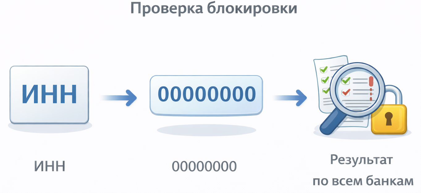 Через сервис «Банк Информ» можно проверить наличие блокировок сразу по всем банкам.