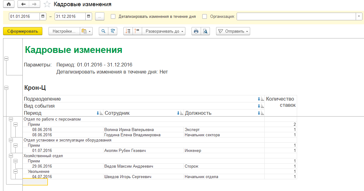 Такая информация помогает оценивать нагрузку на подразделения и выявлять участки, где чаще всего происходят кадровые изменения.