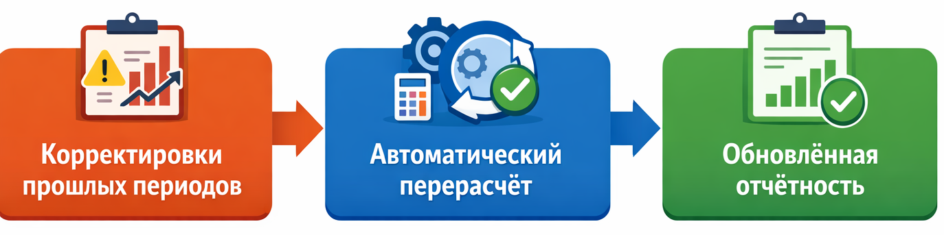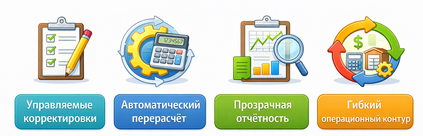 👉 управляемых корректировок + автоматического перерасчёта