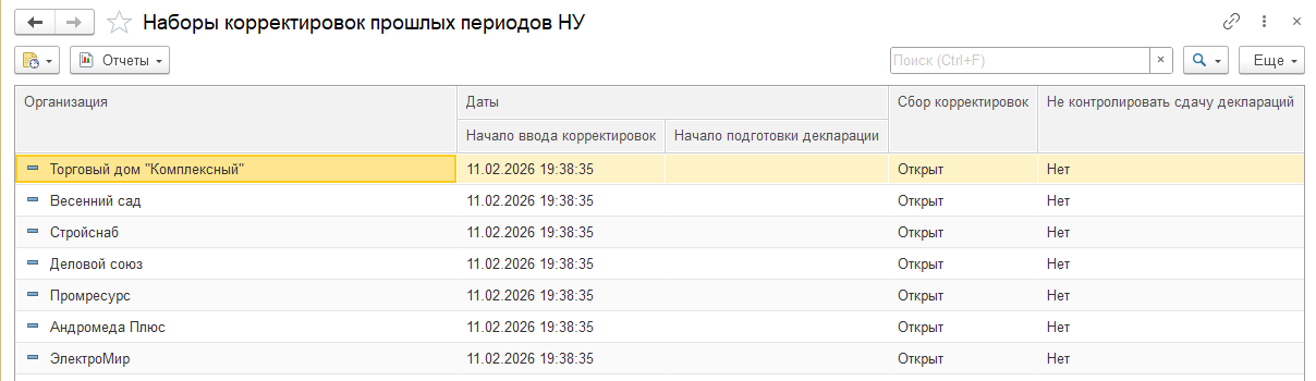 Одно из самых важных нововведений — это механизм наборов корректировок прошлых периодов.