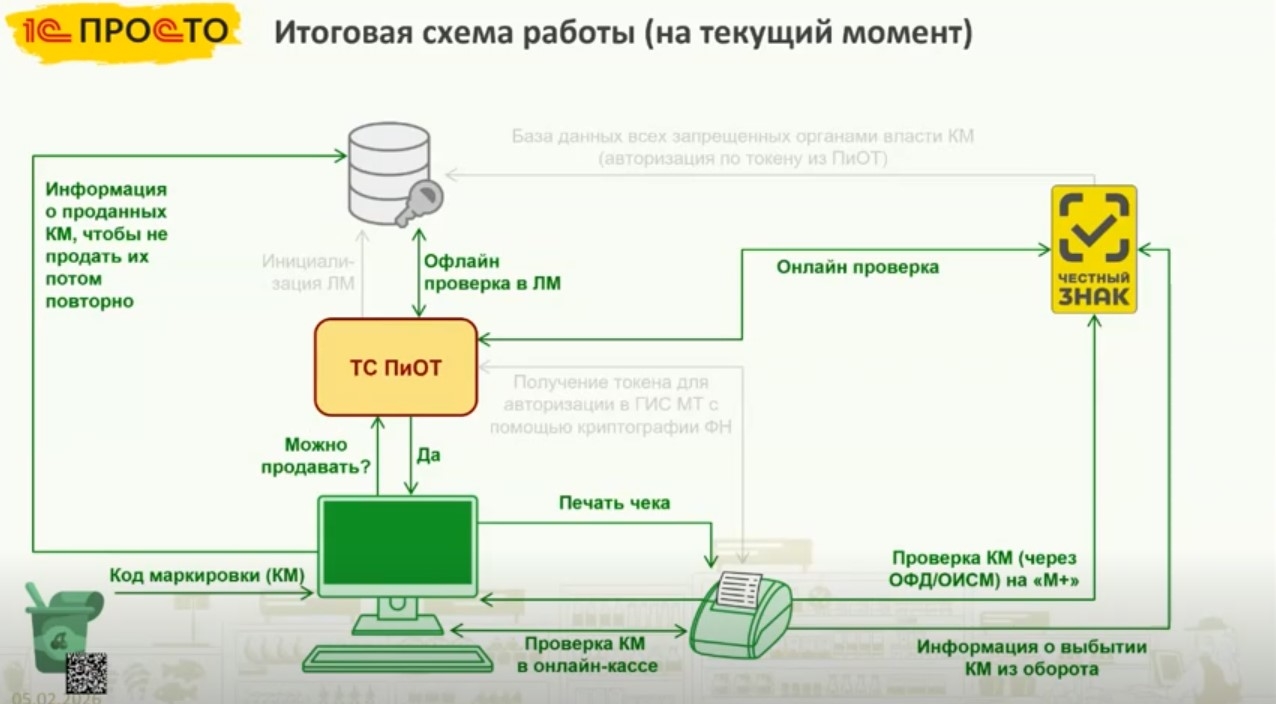1. При запуске ТС ПиОТ автоматически загружает все запрещённые марки с Честного Знака и сохраняет их в локальный модуль на ПК кассира.