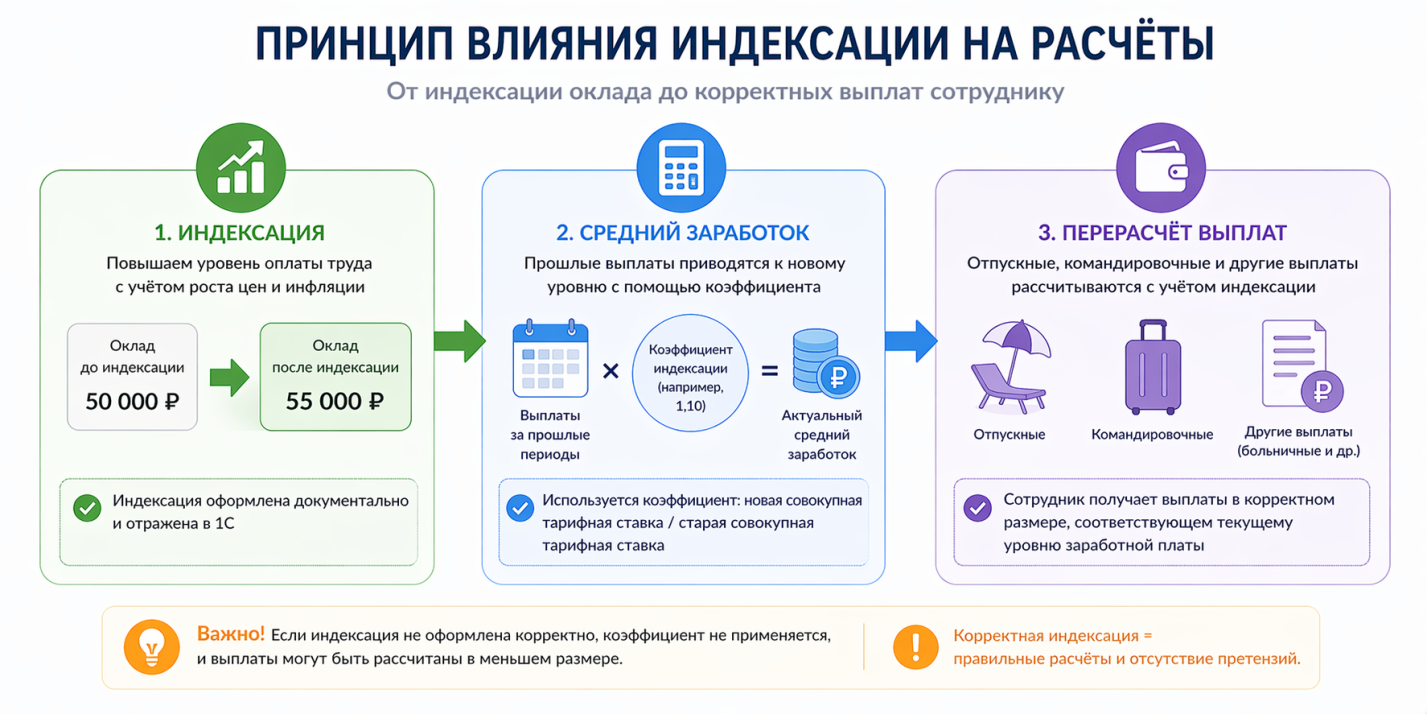 Причина в том, что индексация влияет не только на текущие начисления, но и на механизм расчёта среднего заработка. А здесь уже работают отдельные правила, которые важно учитывать.