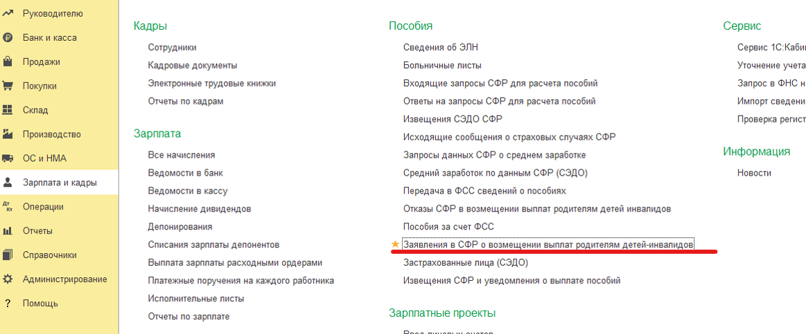 Далее нужно отправить заявление в СФР для компенсации. Если данный документ у вас скрыт посмотрите его в настройке навигации.