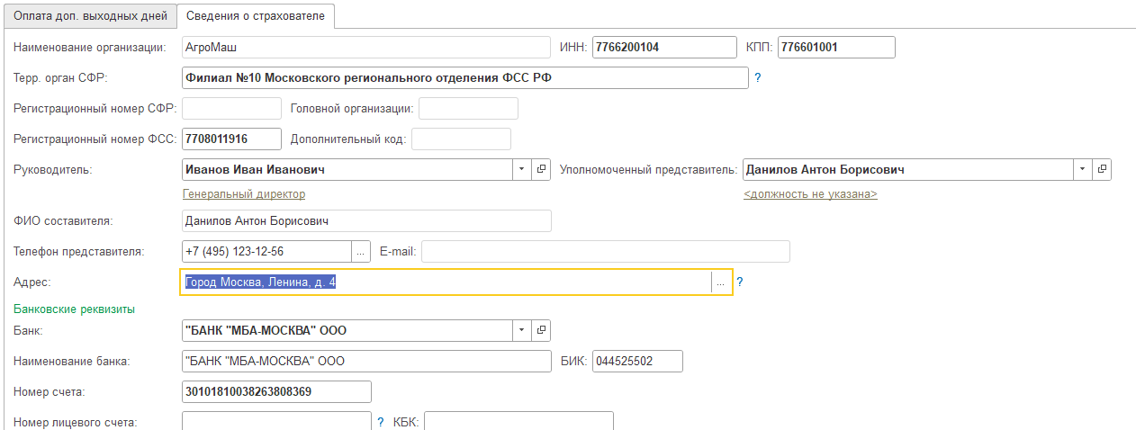 10) У нас это будет Наименование: Оплата дополнительных выходных дней, Счет:69.01, Виды платежей в бюджет (фонды): Налог(взносы): начислено/уплачено.