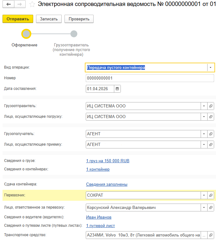 - Регистрация в ГИС ЭПД: документ регистрируется в государственной информационной системе электронного документооборота перевозок.