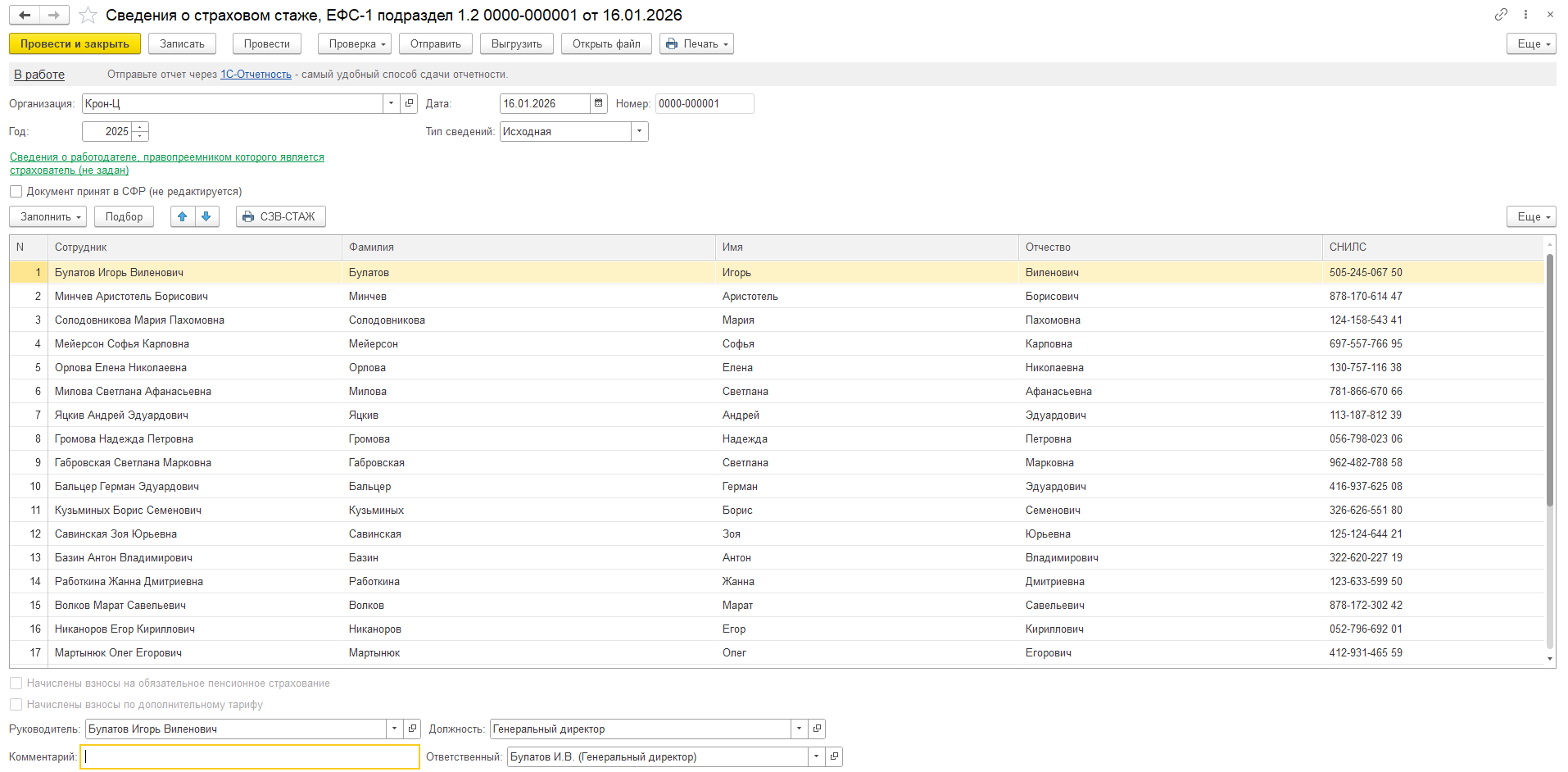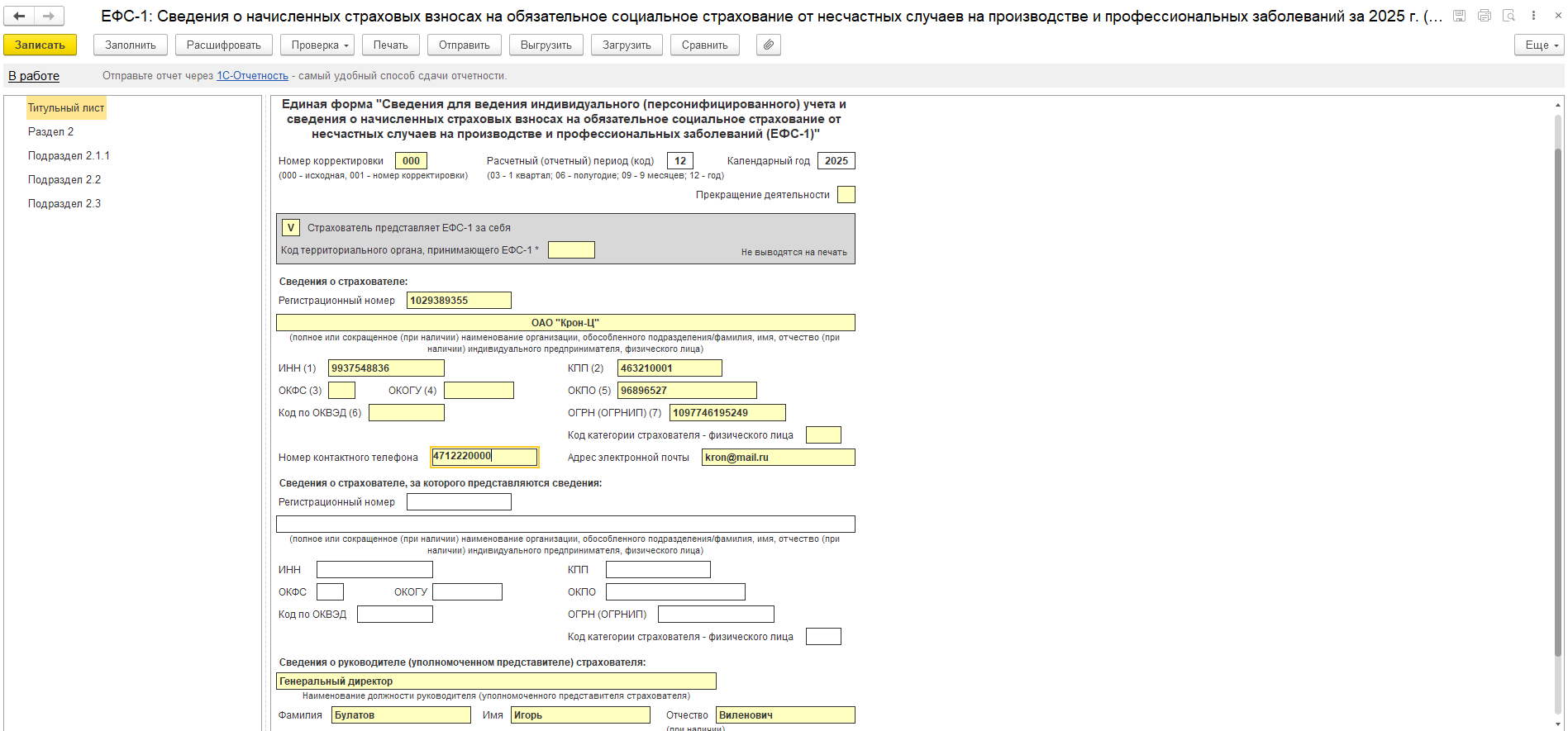 Форма ЕФС-1 (утверждена приказом СФР от 17.11.2025 № 1462). Включает следующие разделы: