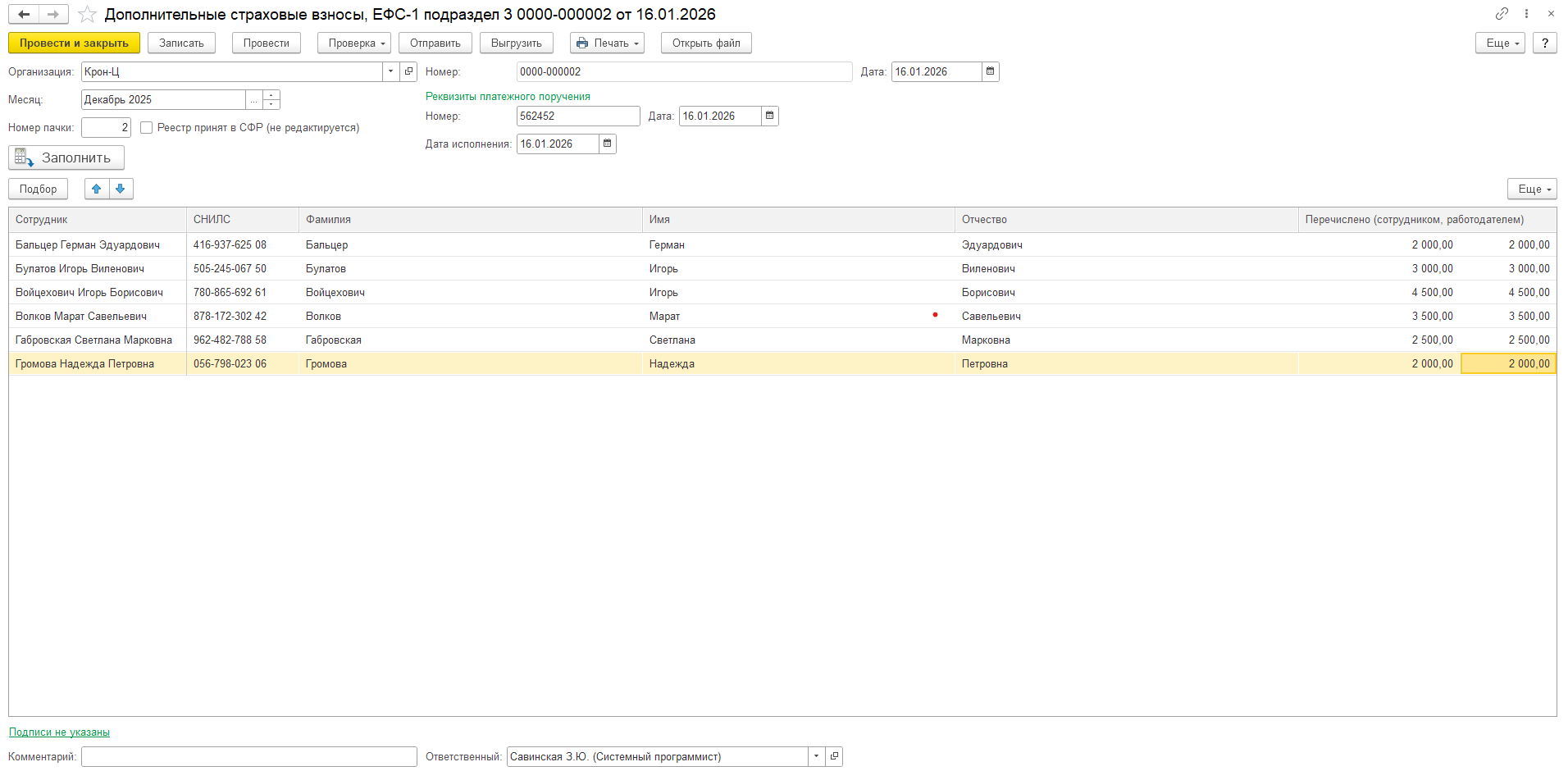 Персонифицированные сведения о физических лицах (приказ ФНС России от 29.09.2022 № ЕД-7-11/878@) за декабрь 2025 года. (Также напоминаем, что ФНС и Минфин разрешили работодателям не сдавать персонифицированные сведения за третий месяц каждого квартала.)