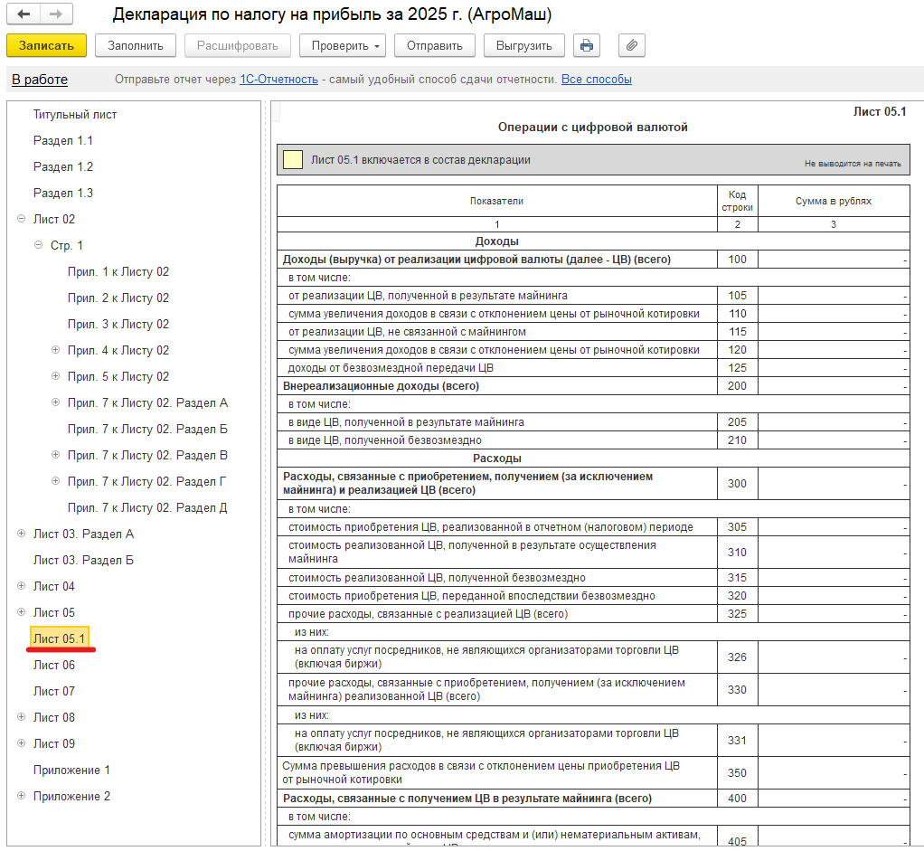 - Появился новый лист 05.1 для отражения операций с цифровой валютой.