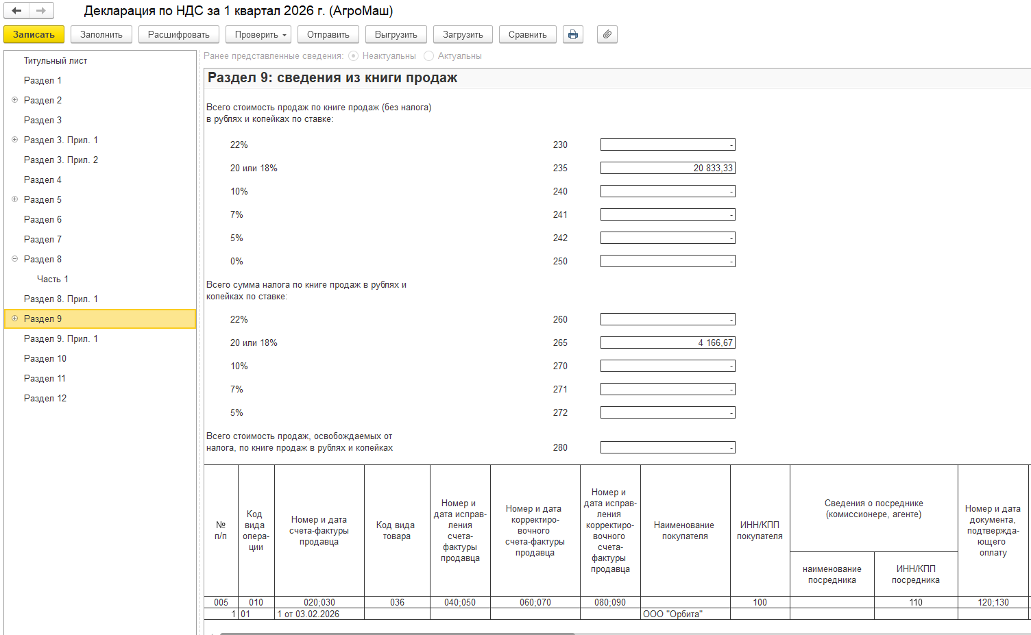 - Добавлены строки для указания счетов-фактур авансов и предоплат в разделах 8 и 9.