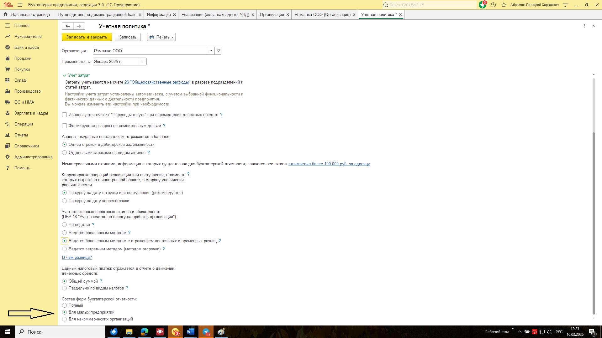 3. Данные учетной политики берутся из одноименного раздела, настроенного для бухгалтерского учета.