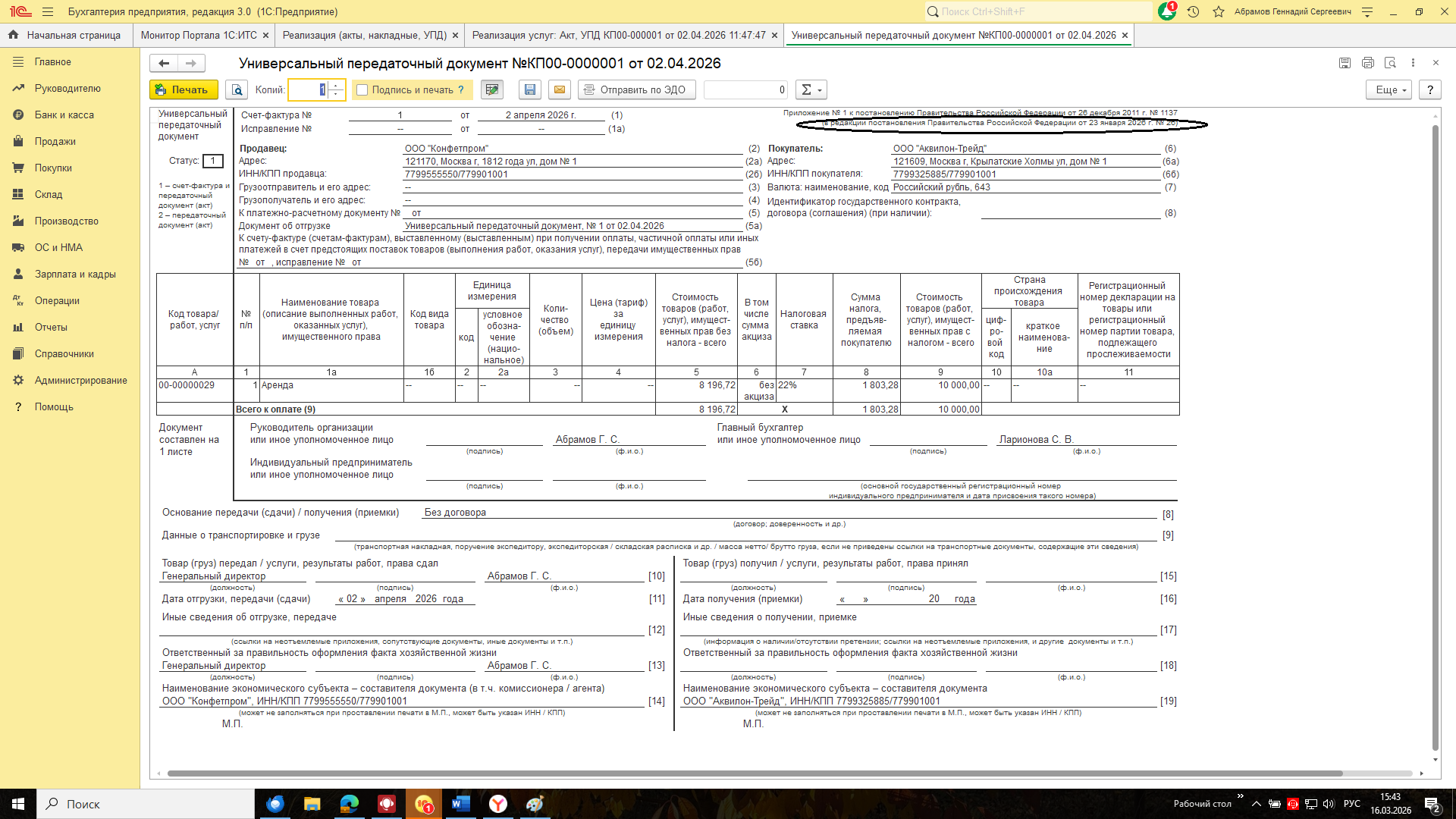 Приведенные в Постановлении Правительства обновленные формы счета-фактуры, книги покупок и книги продаж полностью соответствуют тем, которые были рекомендованы к применению с 1 января 2026 письмом ФНС России от 26.12.2025 № СД-4-3/11730@ (далее – Письмо).