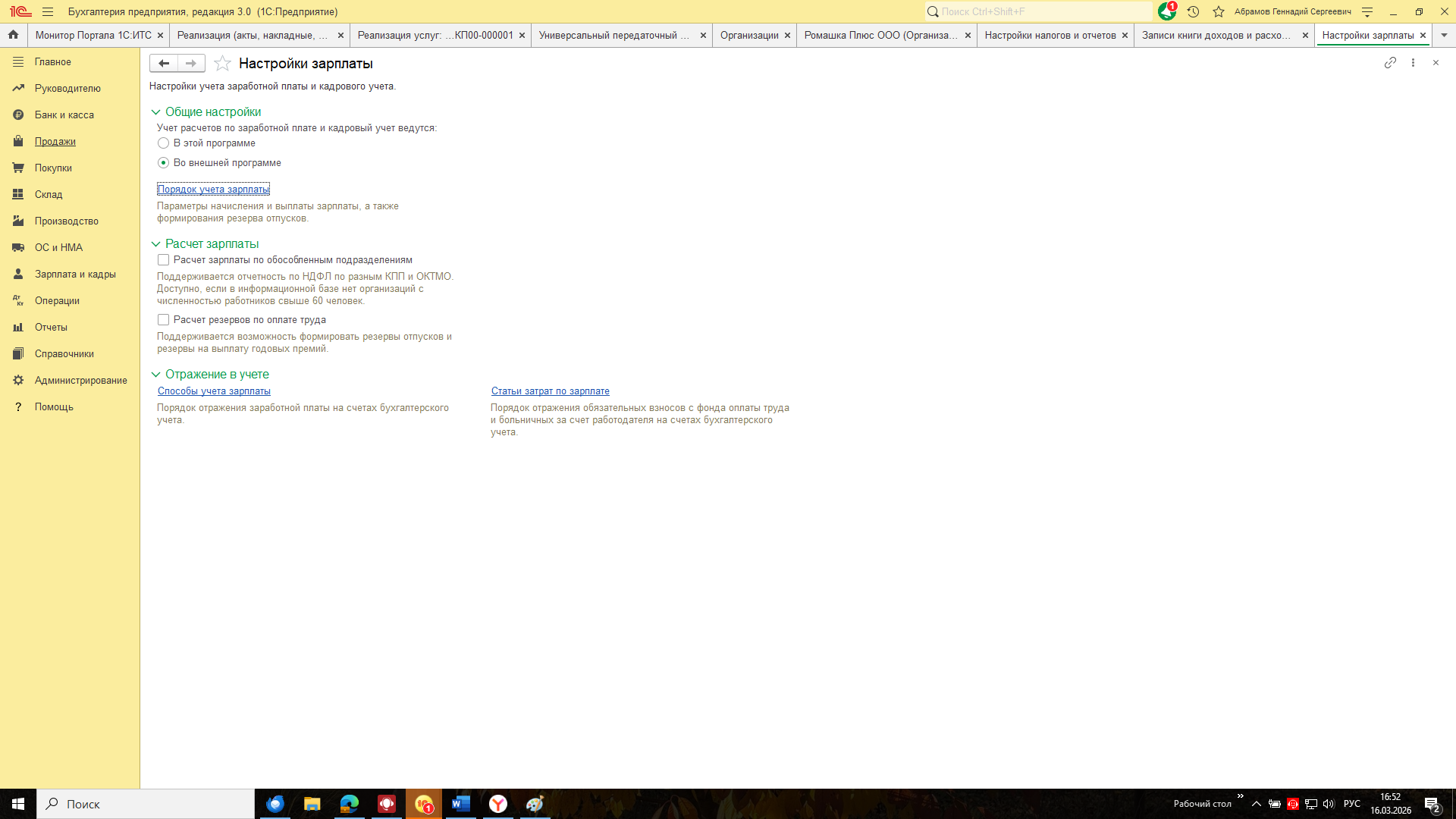 - Если учет зарплаты ведется во внешней программе (например, 1С:ЗУП) — по дате окончательного расчета с сотрудником за месяц начисления.