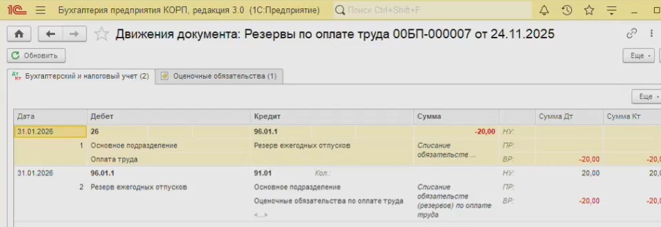 Теперь в резервах по оплате труда будет сторнирование при избытке в бухгалтерском учете: