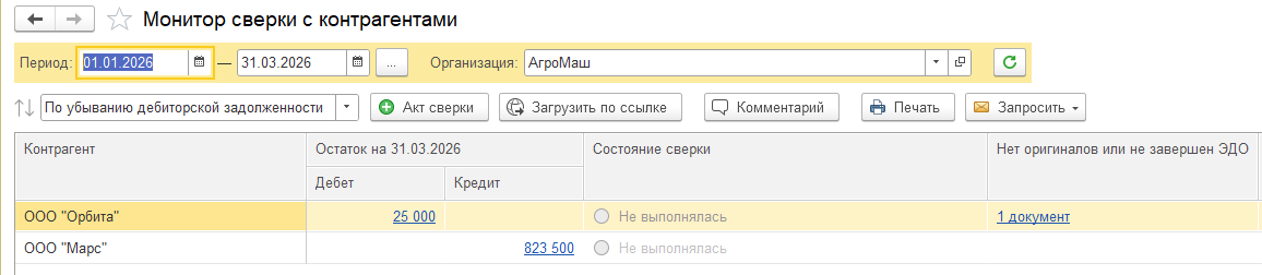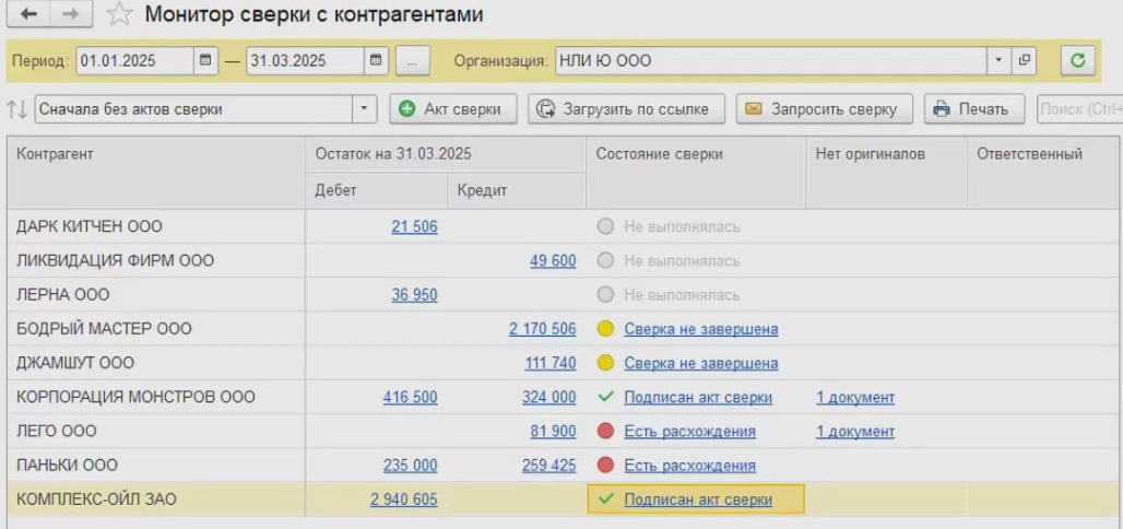 Монитор сверки с контрагентами -встроенный инструмент в программах линейки 1С (в т. ч. «1С:Бухгалтерия 8»), который автоматизирует контроль взаиморасчётов с партнёрами и помогает оперативно выявлять расхождения в учёте.