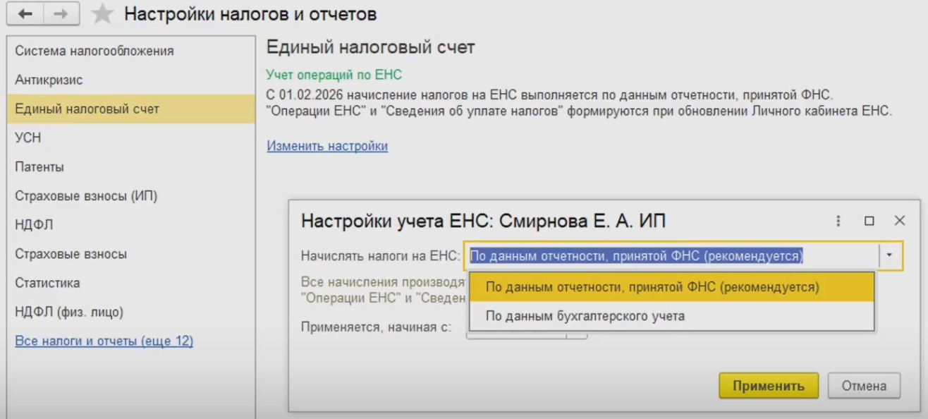 Главное – Налоги и отчеты – Единый налоговый счет – Изменить настройки – и установить по данным бухгалтерского учета.