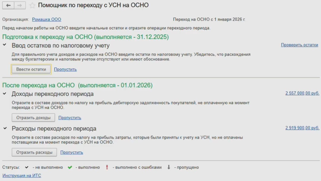 Так выглядит Помощник по переходу с УСН на ОСНО