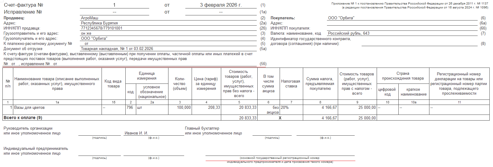 2)Счет-фактура с 1 января 2026 года и её утверждение с 1 апреля 2026
