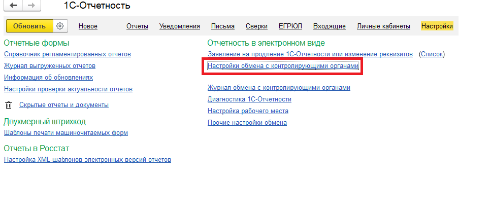 В разделе «Отёчность, справки — 1С Отёчность — Вкладка «Настройки»» можно проверить сертификаты, срок их действия и реквизиты страхователя.